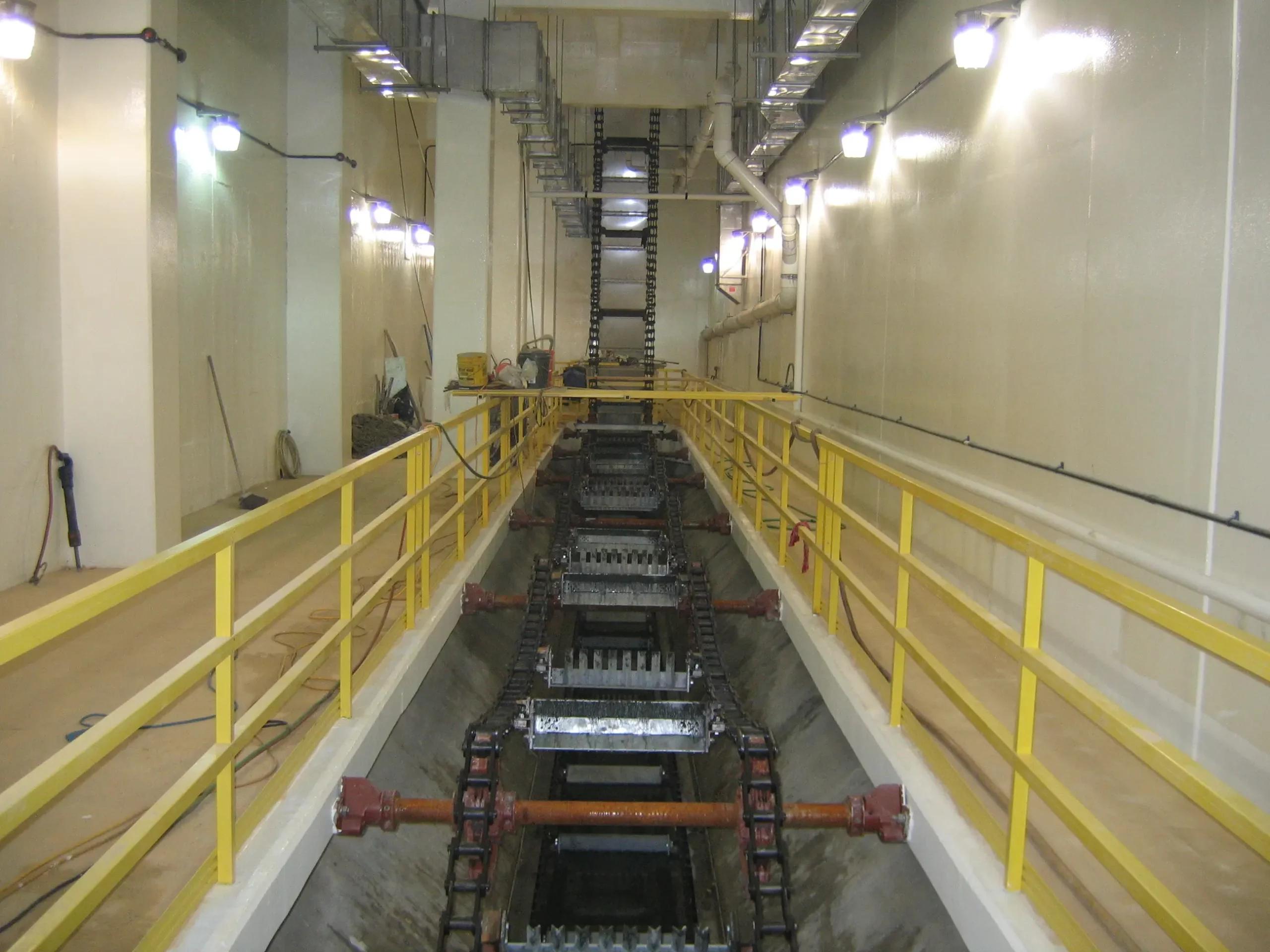 The Rex® Chain & Bucket Grit Collector can be used in shallow or deep grit chambers with flows up to 40 MGD. The high-capacity V-type buckets have end and bottom drains and are mounted on two strands of chain. The chain and bucket conveyor scrapes the grit toward the influent end of the chamber and elevates the grit to a discharge point where it is deposited into a SW Grit Washer, screw conveyor, belt conveyor, or discharge receptacle.