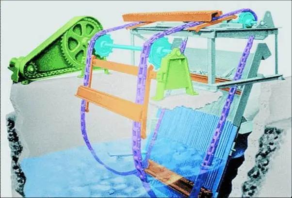 Rugged and reliable, Link-Belt® Extra Heavy-Duty Catenary Bar Screens are commonly used in unattended applications such as CSO control facilities, where the debris loads can be heavy and varied. Sprockets, bearings and shafts are located above the maximum water level, facilitating ease of maintenance and the potential for damage and corrosion. The rakes bear against the face of the bars by the catenary action of the chain. The chains are not guided which means that the rakes can ride over an obstacle without jamming or overloading.