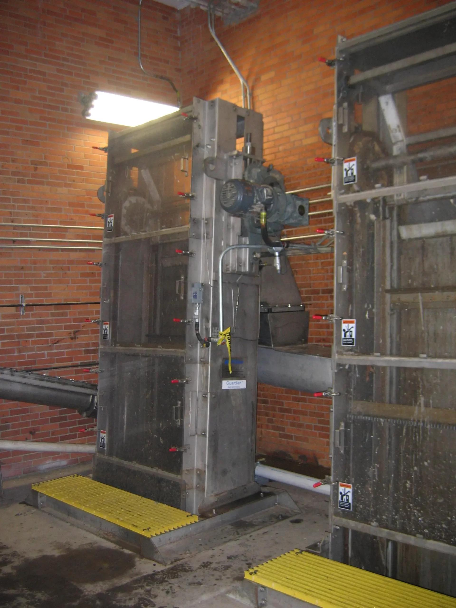 The Guardian® Fine Screen is a self-contained, front cleaned chain and rake bar screen, specifically developed to provide outstanding performance for a wide range of screening requirements. The design includes a stainless-steel frame, high-strength stainless steel bushed roller chain and replaceable non-metallic sprocket tooth segments mounted on stainless steel hubs. Stainless steel carrying rakes include removable tooth segments. The stainless-steel boot design includes a removable bottom mounting plate with integral inlet ramp/bar rack support, designed to capture virtually all channel debris. The simple, low profile, compact head section contains a stainless-steel wiper assembly and heavy-duty ball bearing take-ups. This unique and innovative product, and the design concepts utilized, is the result of over 100 years of screening experience.
